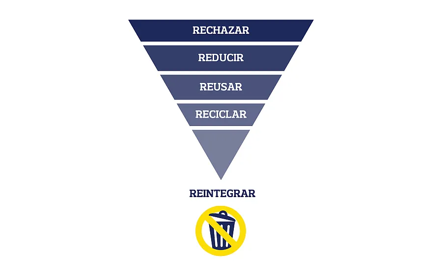 En caso de que no puedas rechazar, reducir y reusar algo, es mejor enviarlo a reciclar, pero ten en cuenta que esto no es posible con todos los materiales ni tantas veces como se desee. Para darte una idea, los plásticos PET se pueden reciclar entre tres y cinco veces dependiendo del color. El papel puede entrar en un nuevo proceso alrededor de seis veces. Luego, todos estos materiales se convierten en basura. Únicamente el vidrio y el metal son reciclables al 100% y pueden procesarse las veces que haga falta.