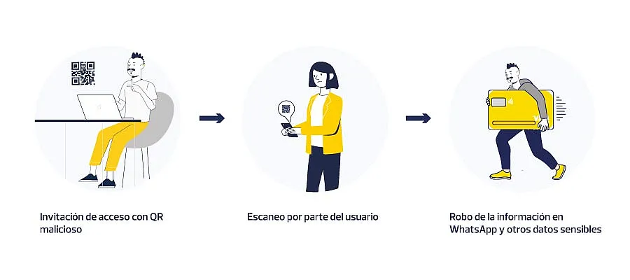 Una vez que has caído en la trampa y has escaneado el código, el cibercriminal obtiene el control absoluto de tu sesión de WhatsApp. Esto incluye fotografías, videos, conversaciones, contactos, etc.... ¡todo!, y sin que la sesión que tienes abierta en tu celular se cierre o te notifique de alguna manera.
